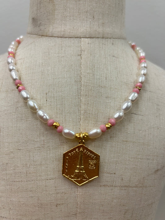 Orange Evil Eye Charm Necklace with Pearls and Beads